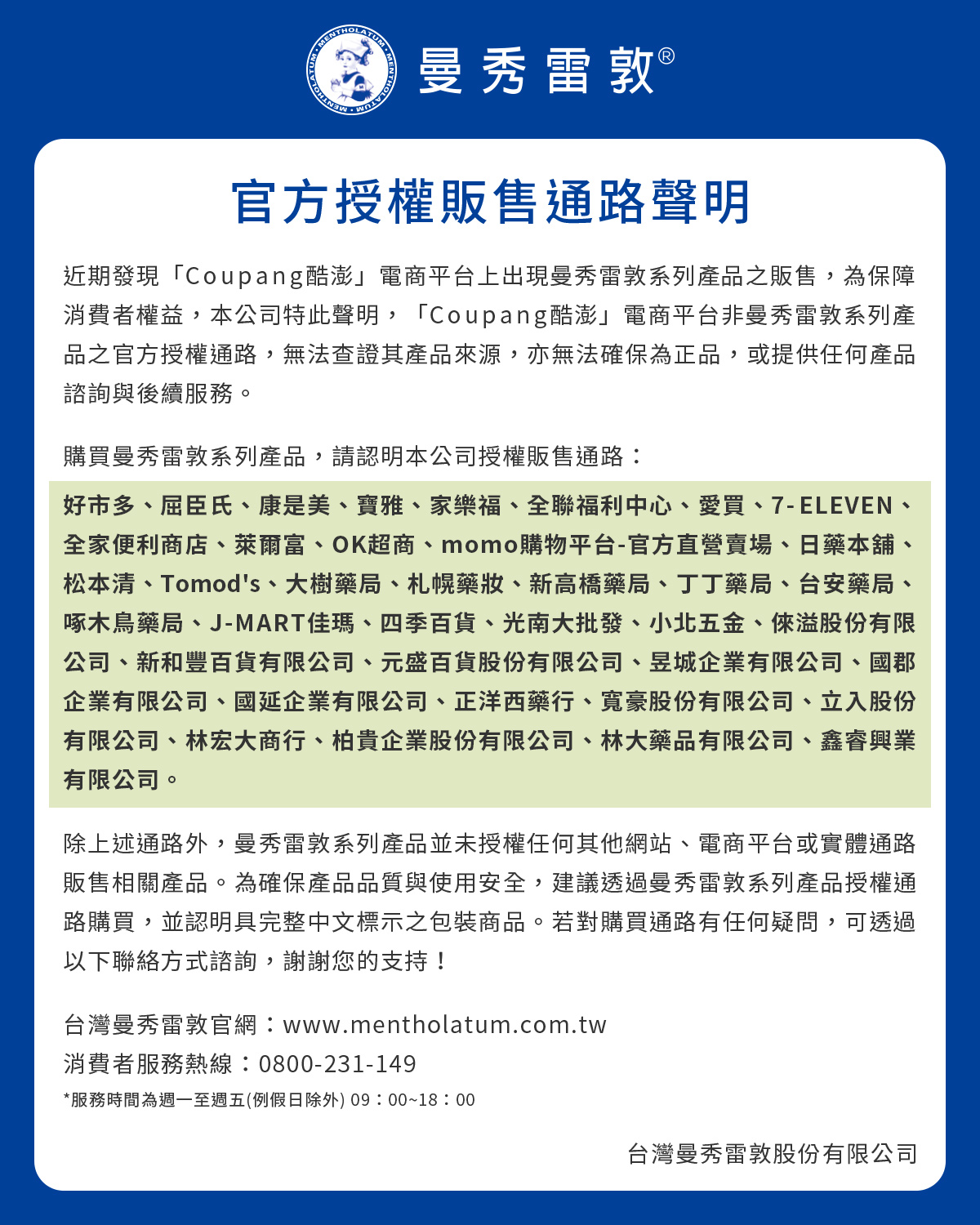 官方授權販售通路聲明